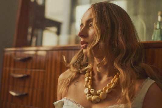 Jūros kriaukles primenantys gintaro karoliai