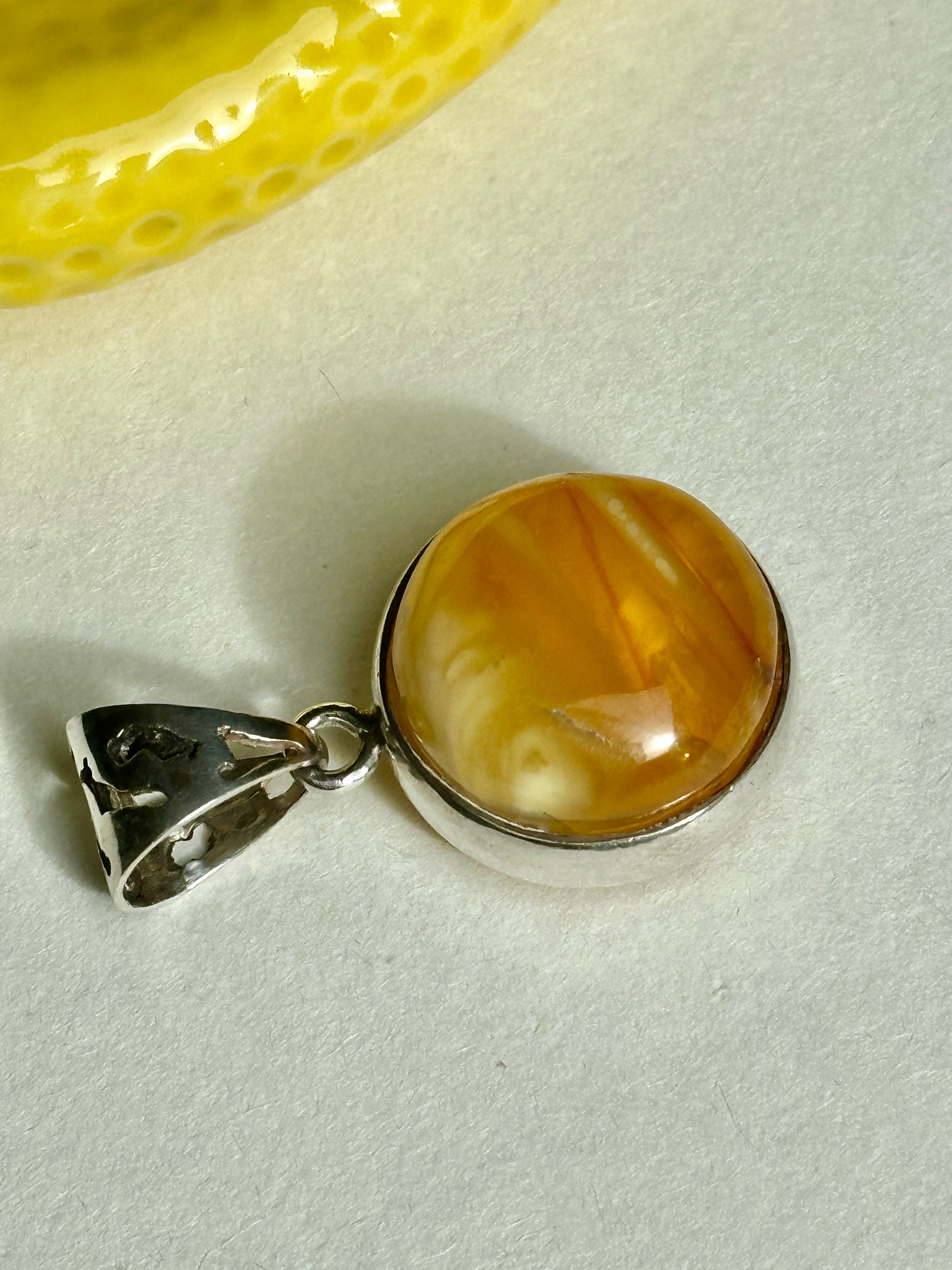 Šilta sviesto geltona – viena iš 2025-ųjų populiariausių spalvų – dera su nesenstančia elegancija šiame vienetiniame gintaro pakabuke su sidabro akcentais. Unikalus, klasikinis „Limone“ kolekcijos kūrinys, įkvėptas Italijos saulėlydžių, pajūrio namų ir citrininių ledų. Kiekvienas pakabukas yra vienetinis – nėra dviejų vienodų.