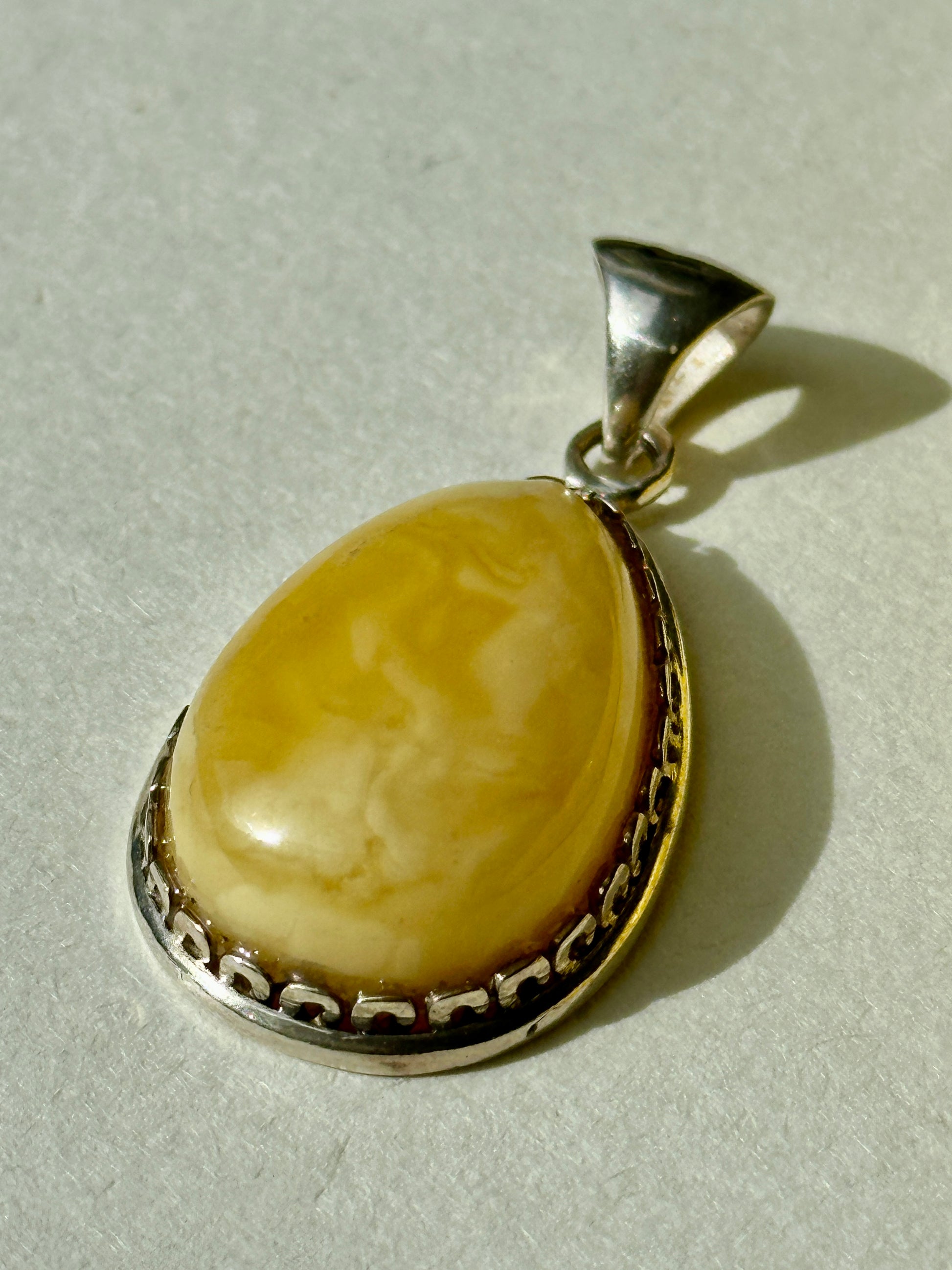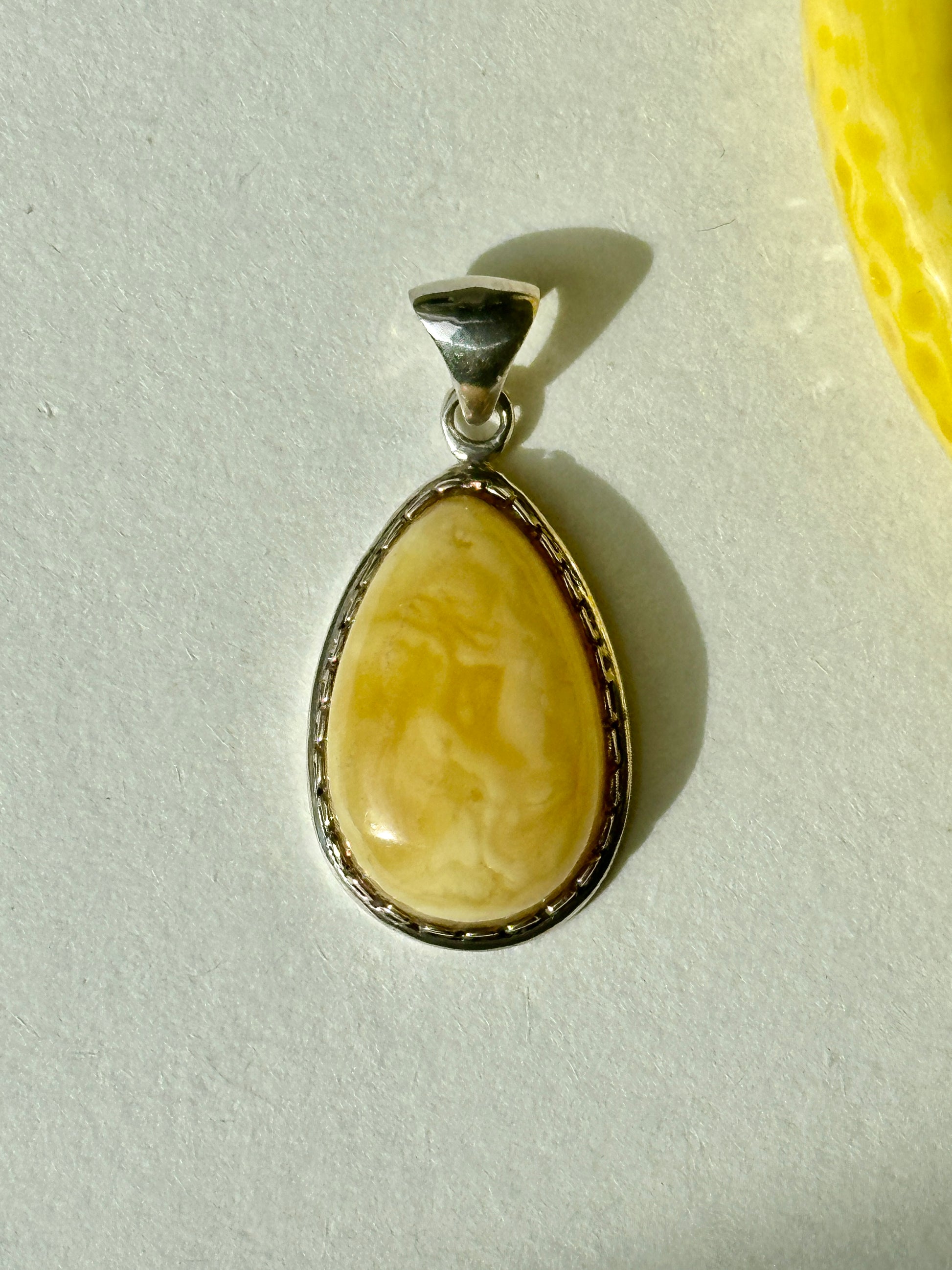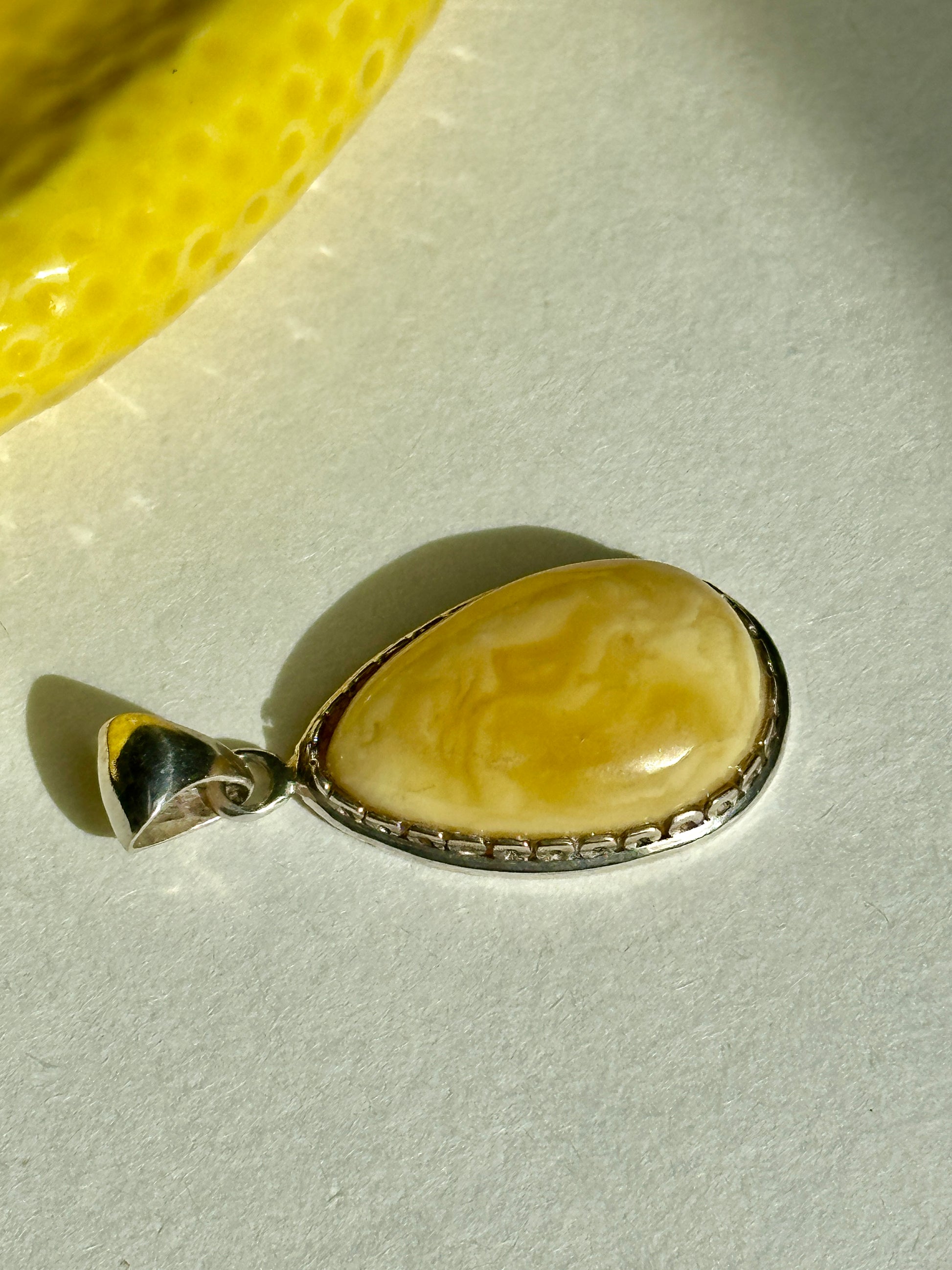 Šilta sviesto geltona – viena iš 2025-ųjų populiariausių spalvų – dera su nesenstančia elegancija šiame vienetiniame gintaro pakabuke su sidabro akcentais. Unikalus, klasikinis „Limone“ kolekcijos kūrinys, įkvėptas Italijos saulėlydžių, pajūrio namų ir citrininių ledų. Kiekvienas pakabukas yra vienetinis – nėra dviejų vienodų.