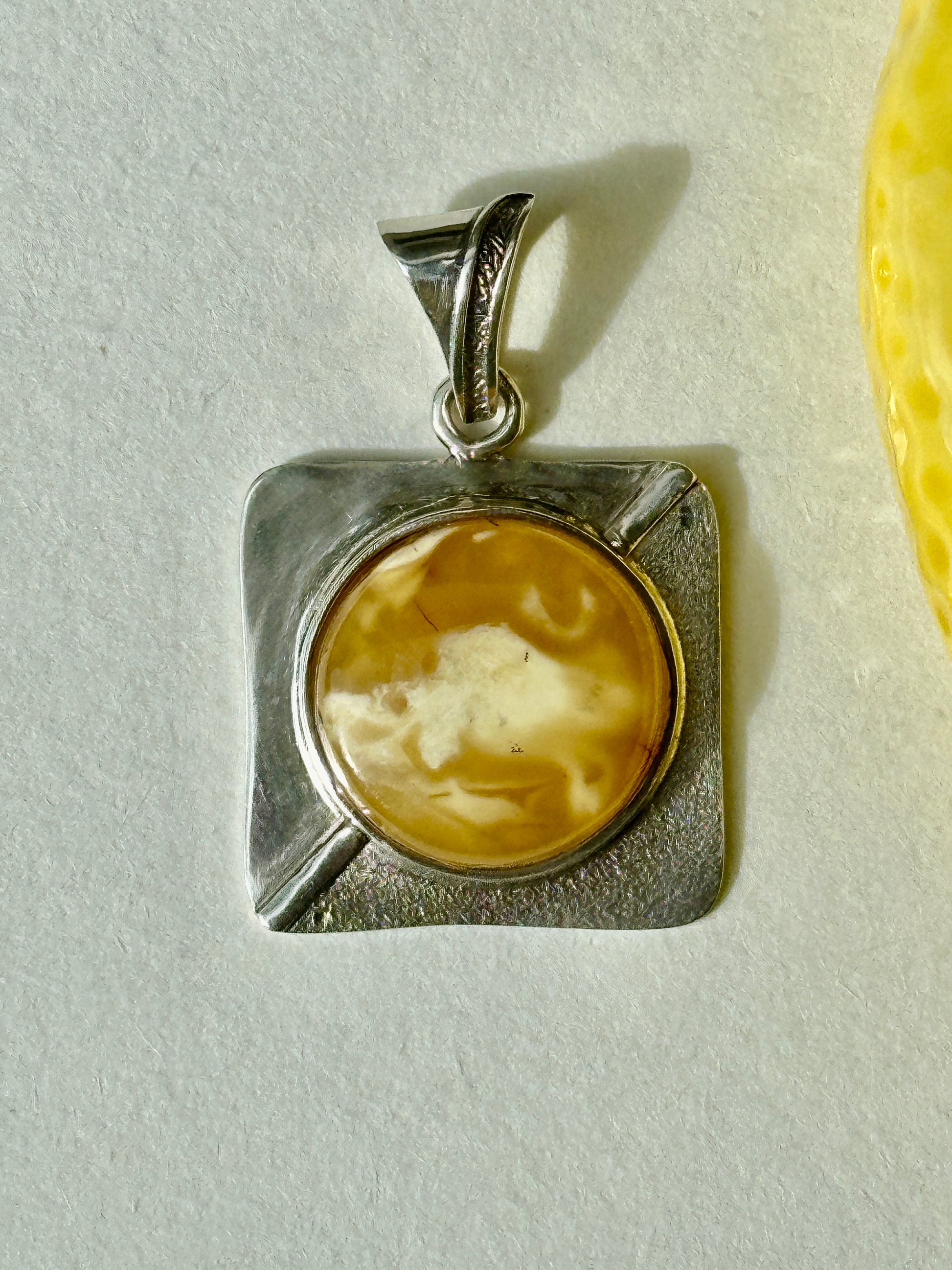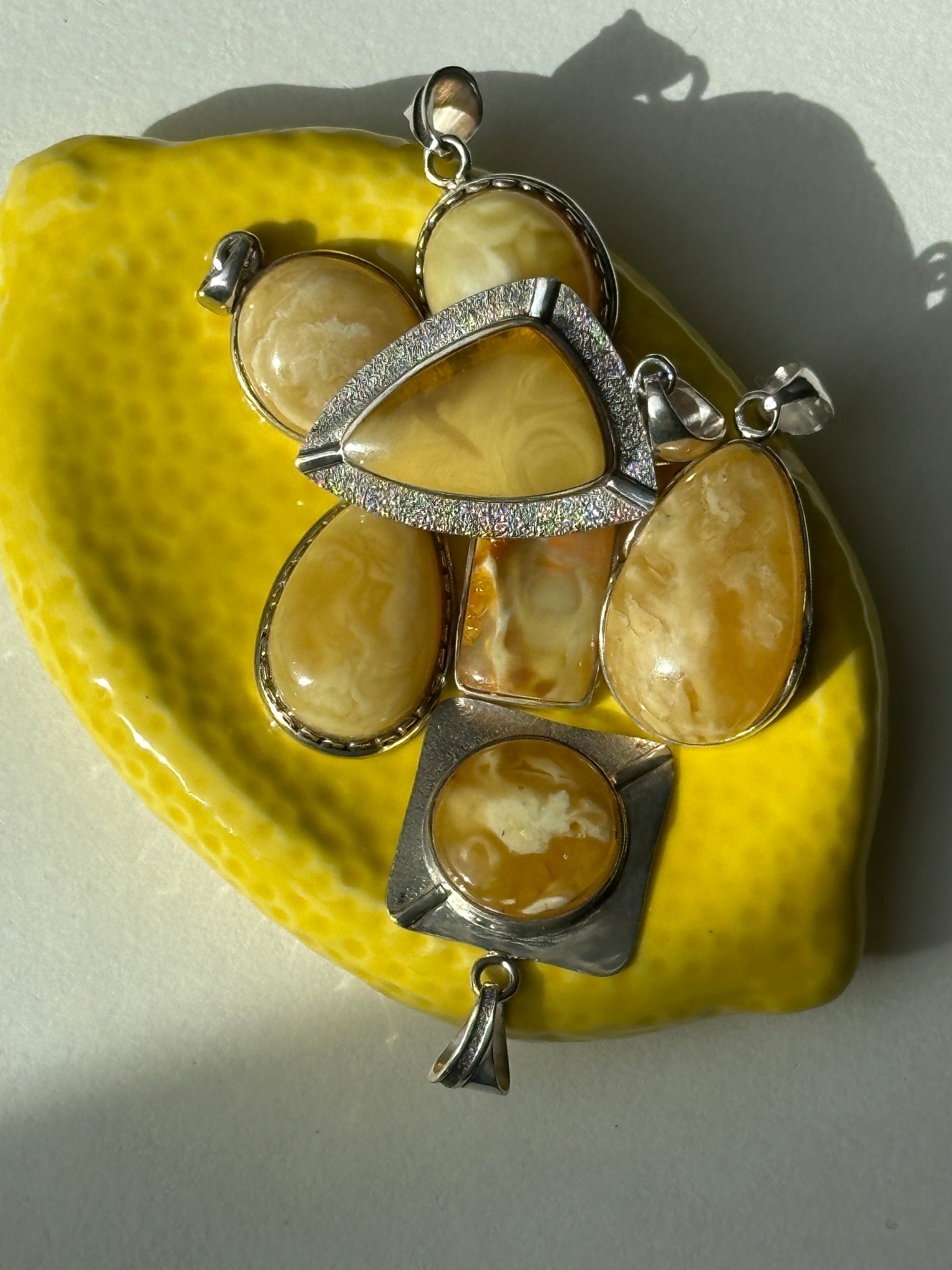 Šilta sviesto geltona – viena iš 2025-ųjų populiariausių spalvų – dera su nesenstančia elegancija šiame vienetiniame gintaro pakabuke su sidabro akcentais. Unikalus, klasikinis „Limone“ kolekcijos kūrinys, įkvėptas Italijos saulėlydžių, pajūrio namų ir citrininių ledų. Kiekvienas pakabukas yra vienetinis – nėra dviejų vienodų.