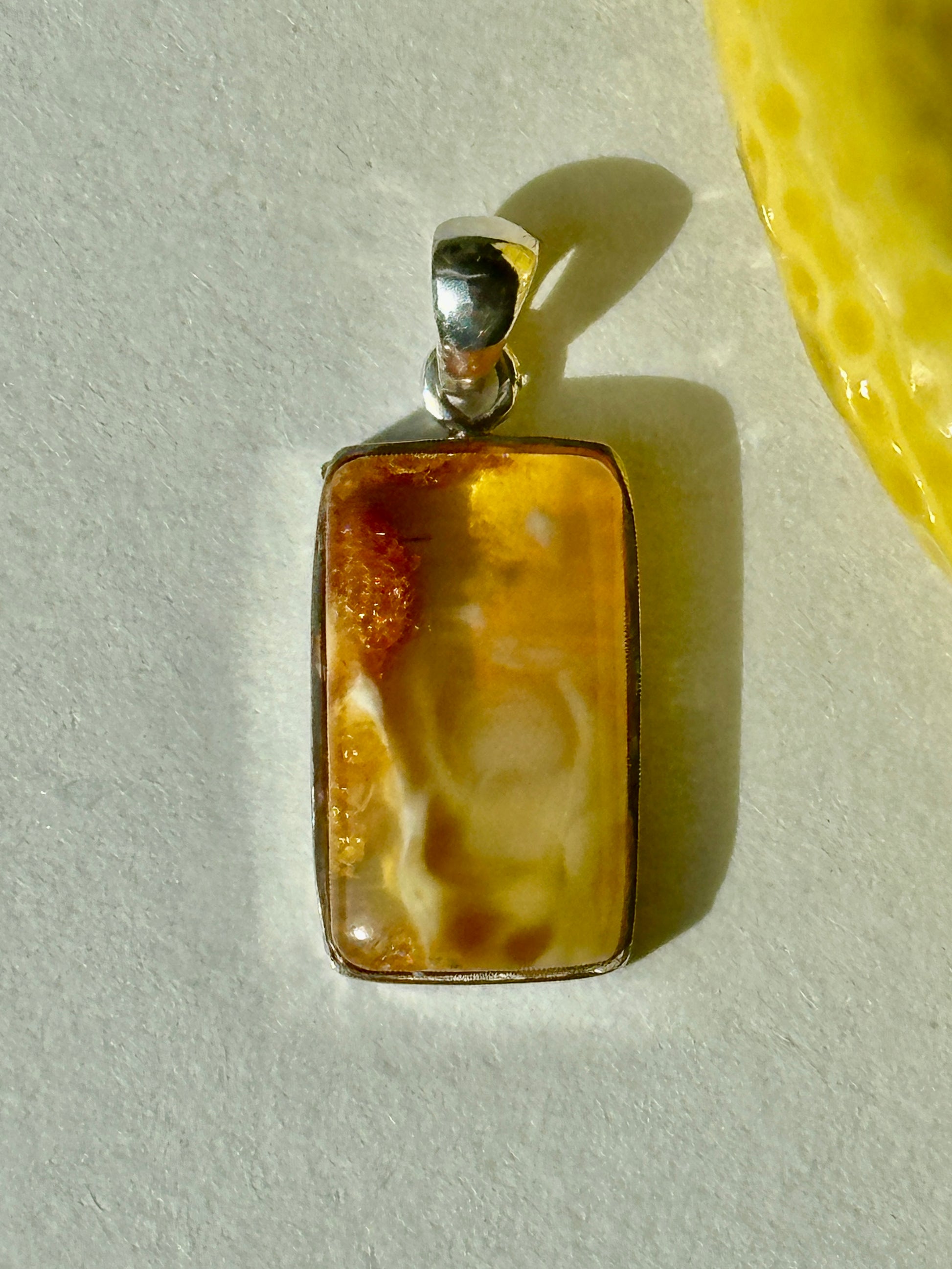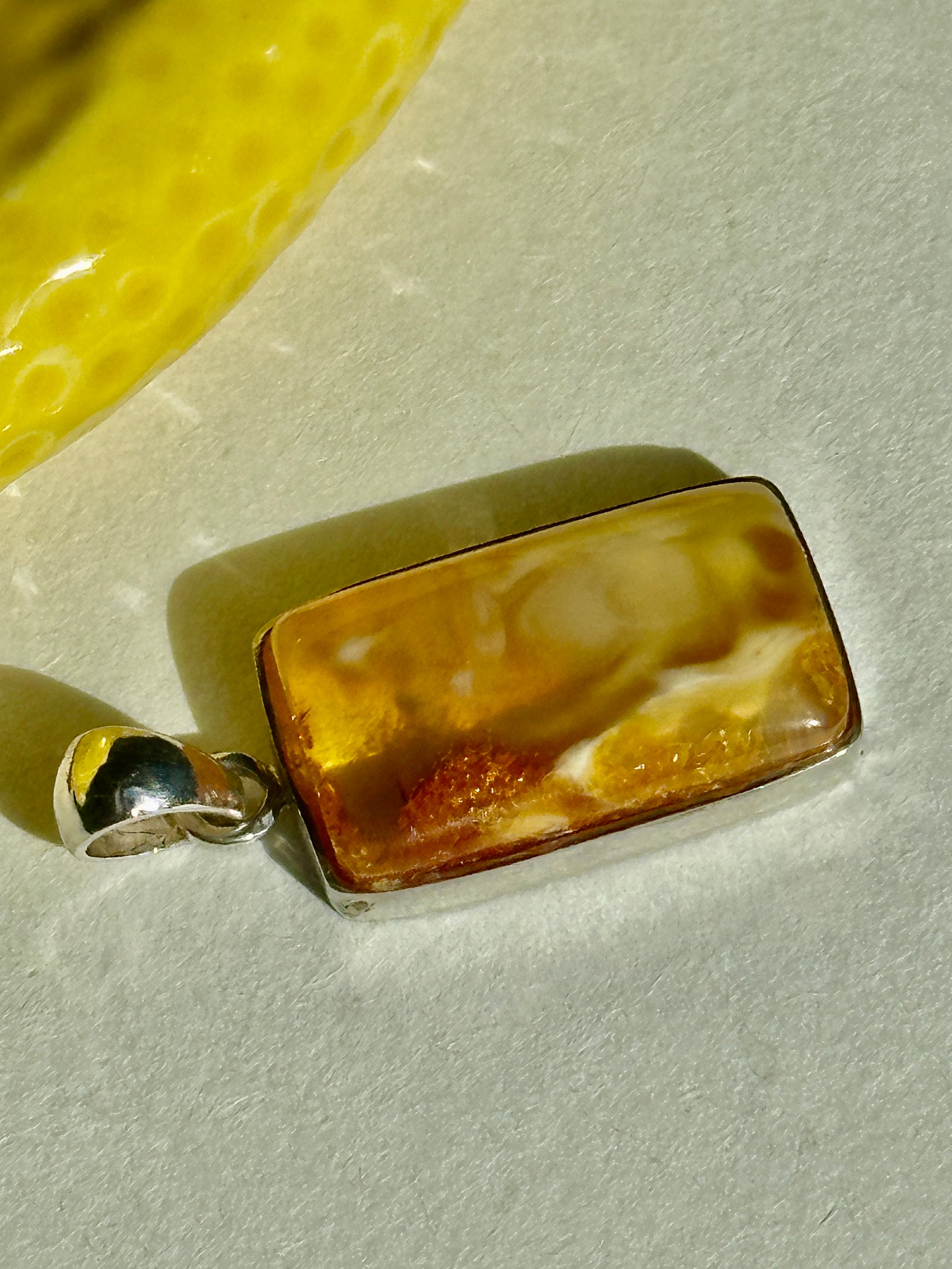 Šilta sviesto geltona – viena iš 2025-ųjų populiariausių spalvų – dera su nesenstančia elegancija šiame vienetiniame gintaro pakabuke su sidabro akcentais. Unikalus, klasikinis „Limone“ kolekcijos kūrinys, įkvėptas Italijos saulėlydžių, pajūrio namų ir citrininių ledų. Kiekvienas pakabukas yra vienetinis – nėra dviejų vienodų.