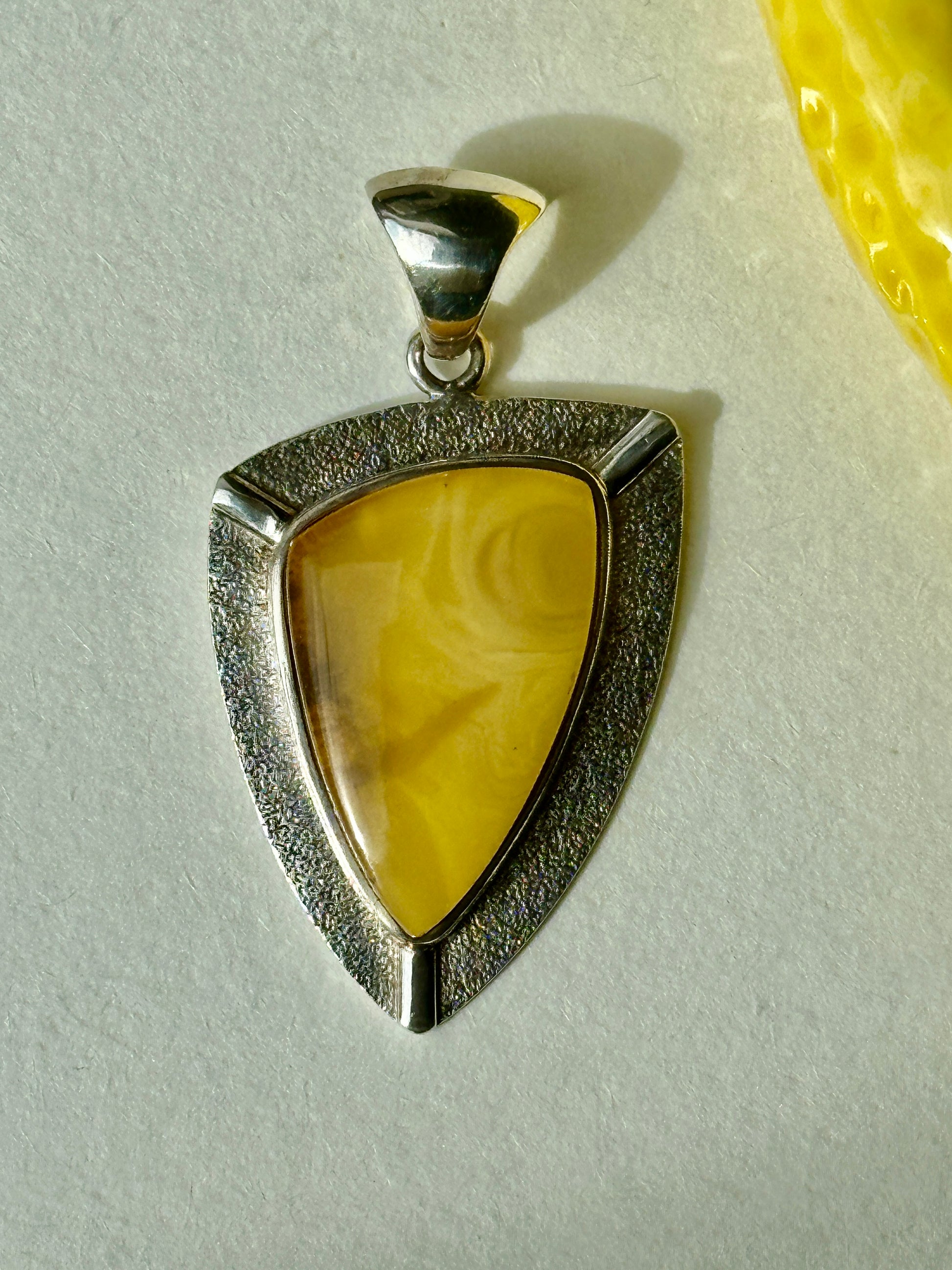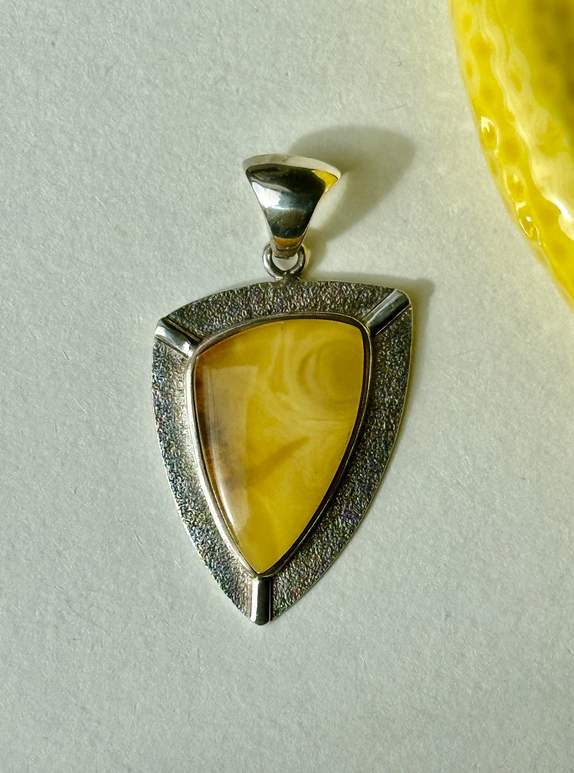 Šilta sviesto geltona – viena iš 2025-ųjų populiariausių spalvų – dera su nesenstančia elegancija šiame vienetiniame gintaro pakabuke su sidabro akcentais. Unikalus, klasikinis „Limone“ kolekcijos kūrinys, įkvėptas Italijos saulėlydžių, pajūrio namų ir citrininių ledų. Kiekvienas pakabukas yra vienetinis – nėra dviejų vienodų.