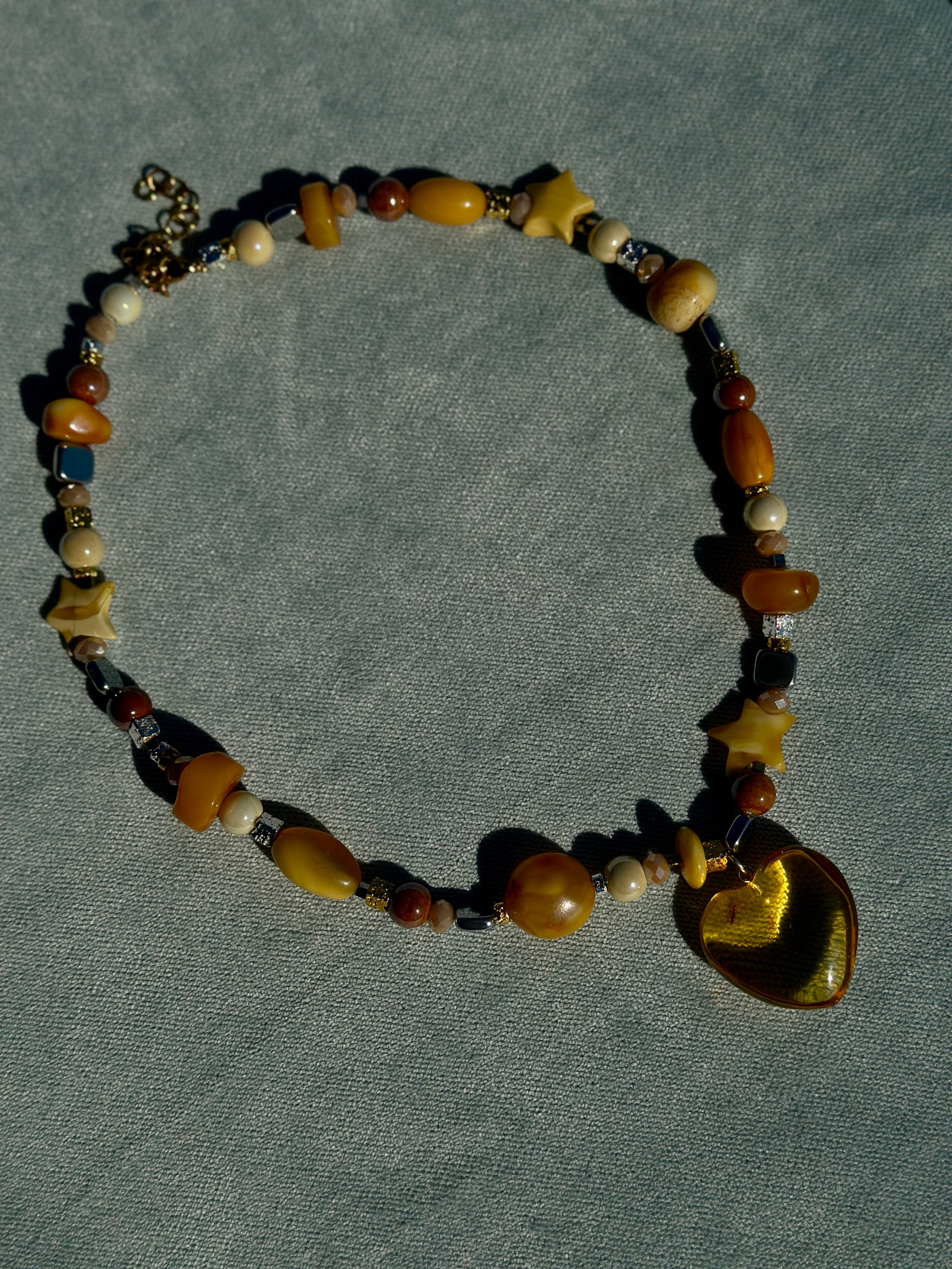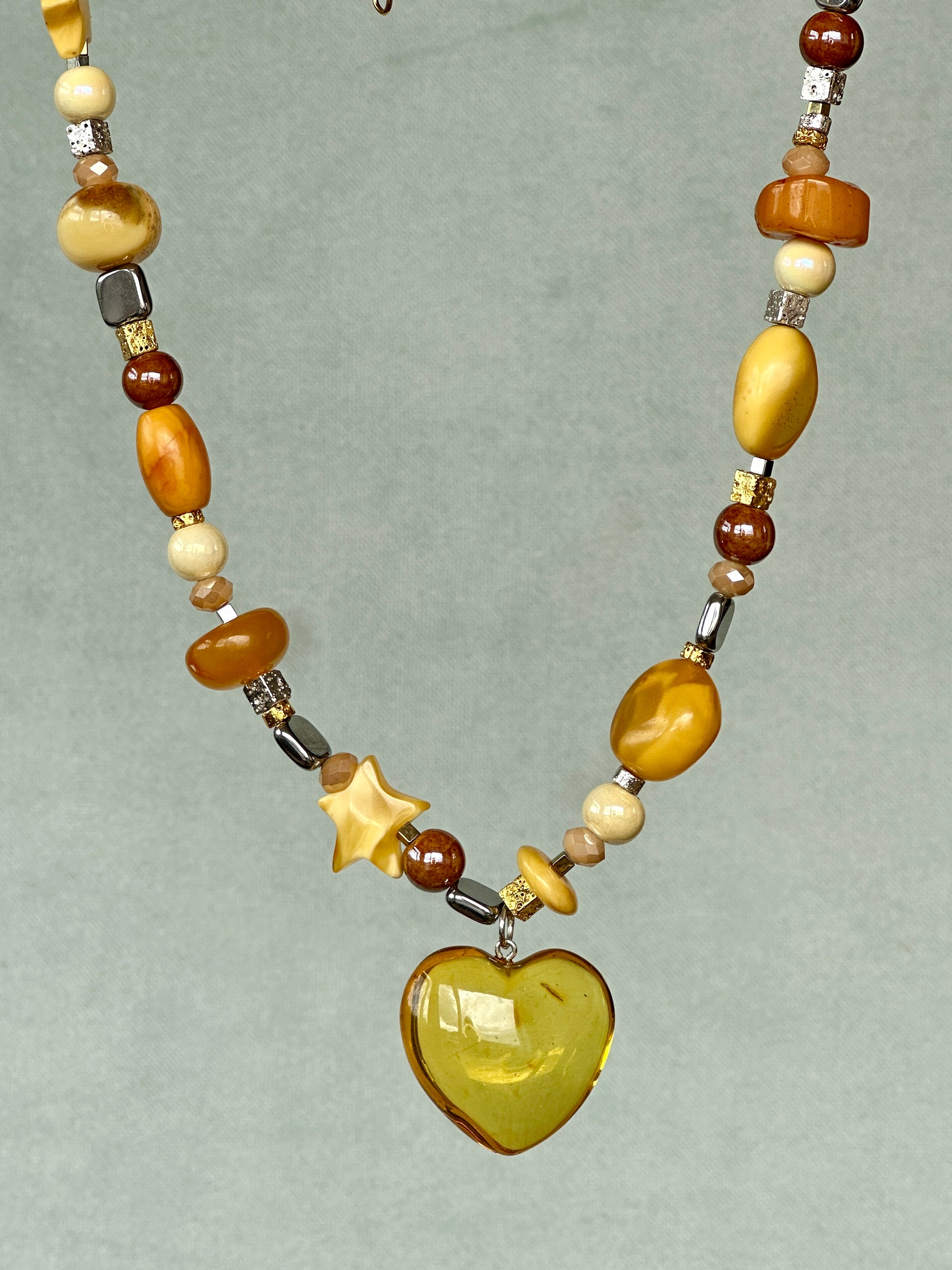 Šis vėrinys – tai žaisminga ir jaunatviškai gaivi gintaro interpretacija. Derinant natūralią gintaro šilumą su netikėtomis formomis ir išraiškingu dizainu, jis drąsiai permąsto tradicijas. Kiekvienas karoliukas yra unikalus dėl natūralių gintaro savybių, todėl šis vėrinys yra išties vienetinis. Tai ryškus ir lengvas aksesuaras tiems, kurie mėgsta išsiskirti, spindėti ir puoselėti savo individualumą.