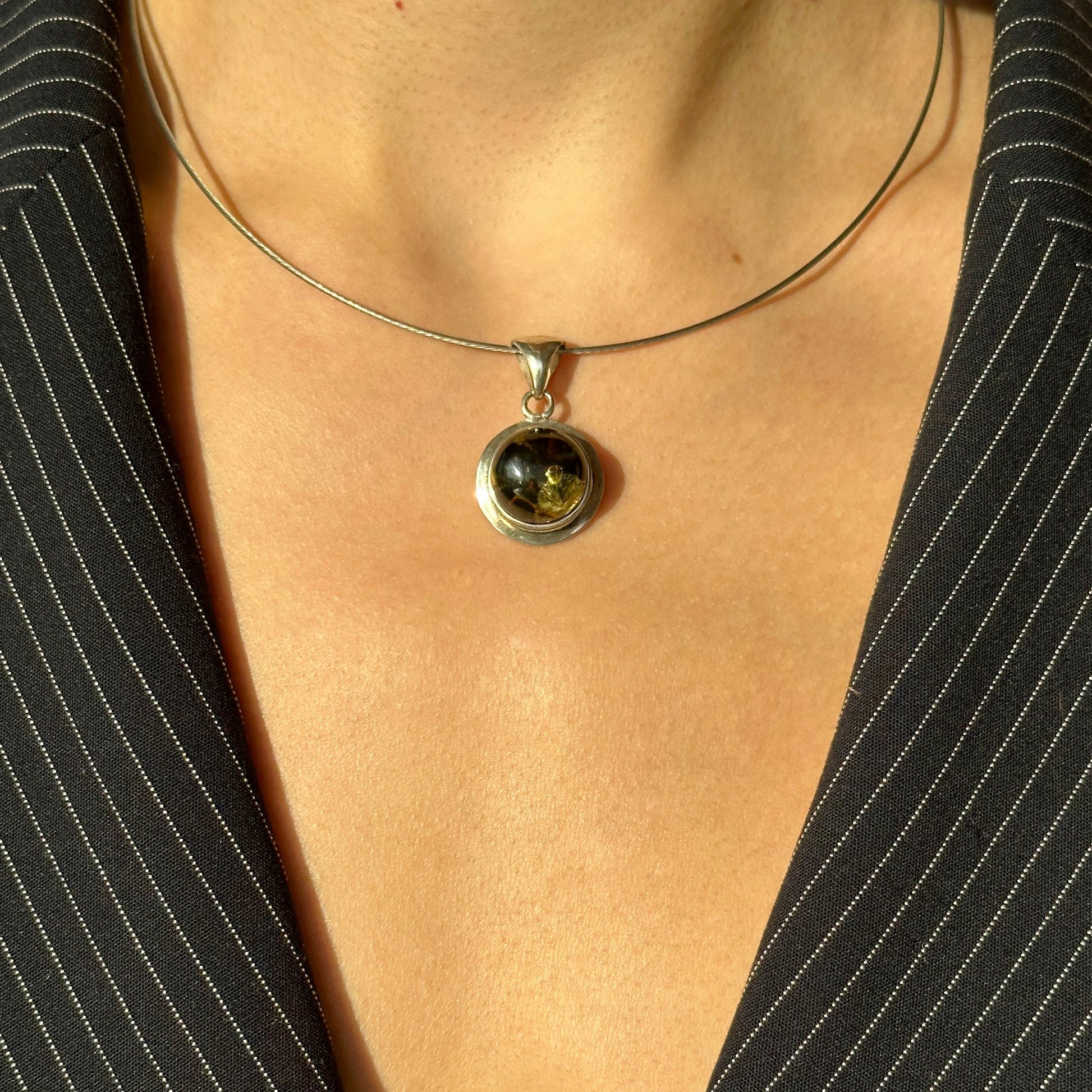 Šis nuostabus žalio gintaro pakabukas įkūnija sodrių ir gyvybingų Amazonės atogrąžų miškų dvasią – jo vidiniai raštai primena lapus ir gamtos tekstūras. Sidabrinis apvadas elegantiškai įrėmina gintarą, išryškindamas gilią žalią spalvą ir suteikia rafinuotumo. Tai tobula gamtos grožio ir išskirtinio dizaino sintezė.